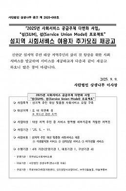 「2025년 사회서비스 공급주체 다변화사업」사회서비스 이용자 추가모집 재공고(9월)
