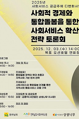 2025년 사회서비스 공급주체 다변화사업 「사회적 경제와 통합돌봄을 통한 사회서비스 확산 전략 토론회」개최