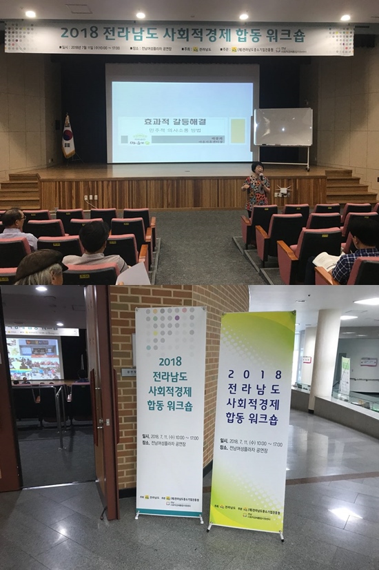 11일 수요일, 전남여성플라자 공연장에서 2018 전라남도 사회적경제 합동 워크숍이 개최되었습니다.