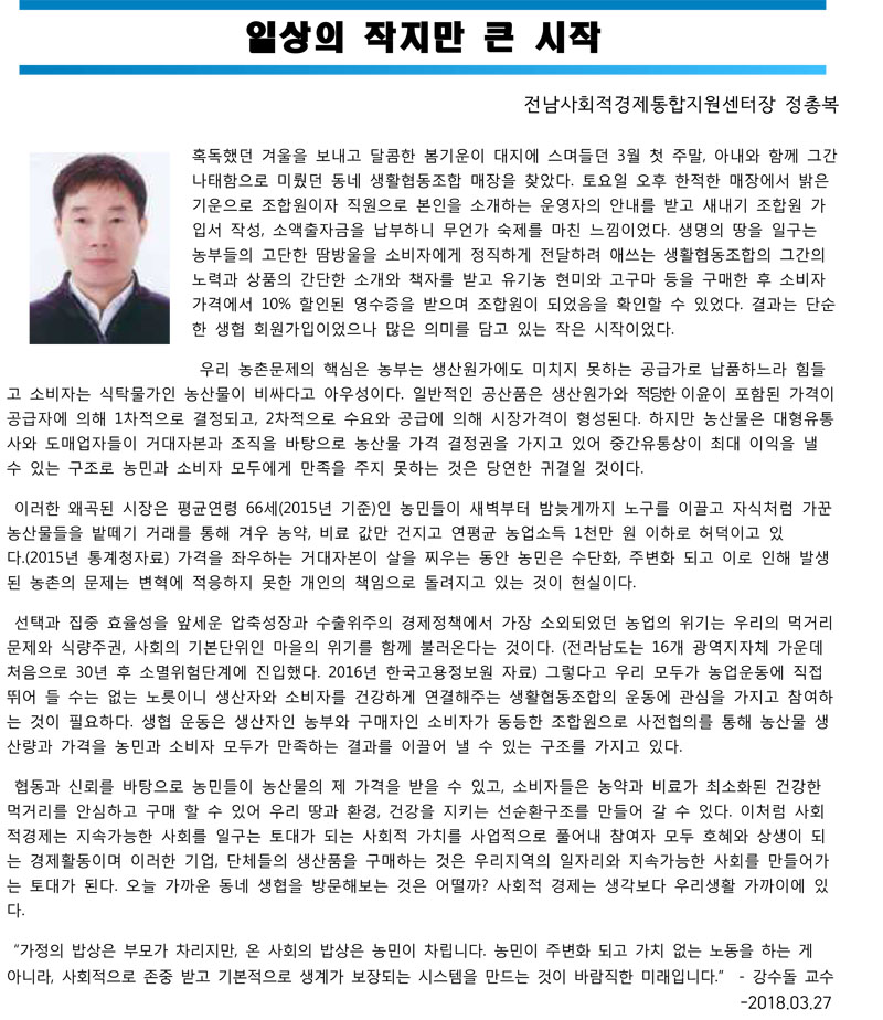 본 글은 전남사회적경제통합지원센터에서 작성한 글로, 모든 저작권은 전남사회적경제통합지원센터에게 있습니다. 퍼가실 때는 출처를 명확하게 밝혀주시고, 전문 기사에 대한 링크를 걸어주세요. (단, 영리 목적에 의한 퍼가기는 불가합니다.).