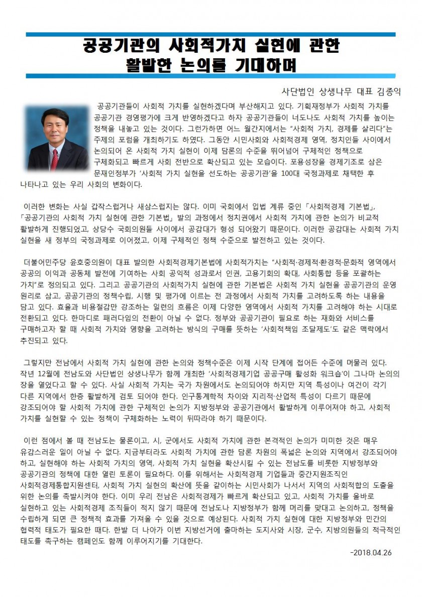 [논설]공공기관의 사회적가치 실현에 관한 활발한 논의를 기대하며