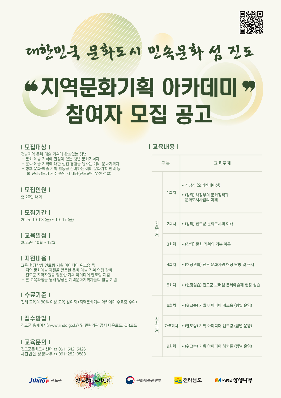 대한민국 문화도시 민속문화 섬 진도 "지역문화기획 아카데미" 참여자 모집 공고