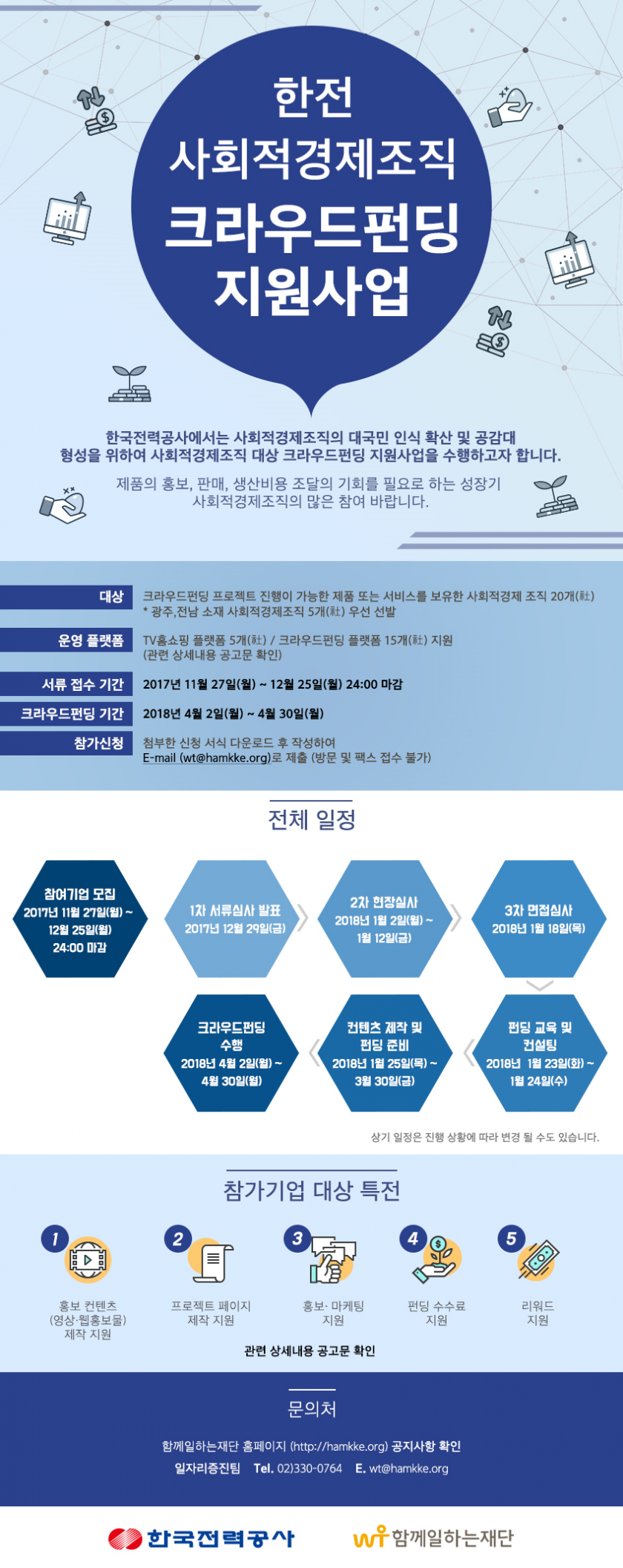 [공고] 한전 사회적경제조직 크라우드펀딩 지원사업 참여기업 모집 (~12/25)