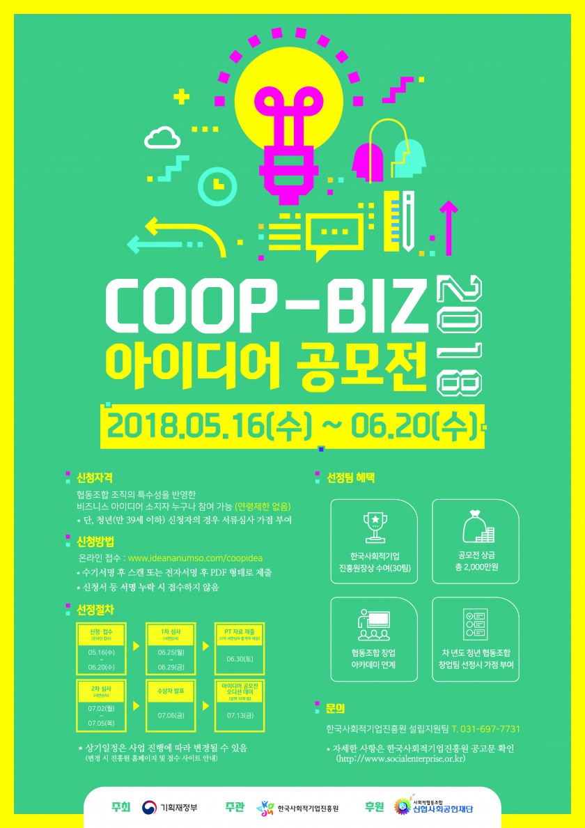 2018년도 『청년 협동조합 창업 아이디어 공모전』모집 공고