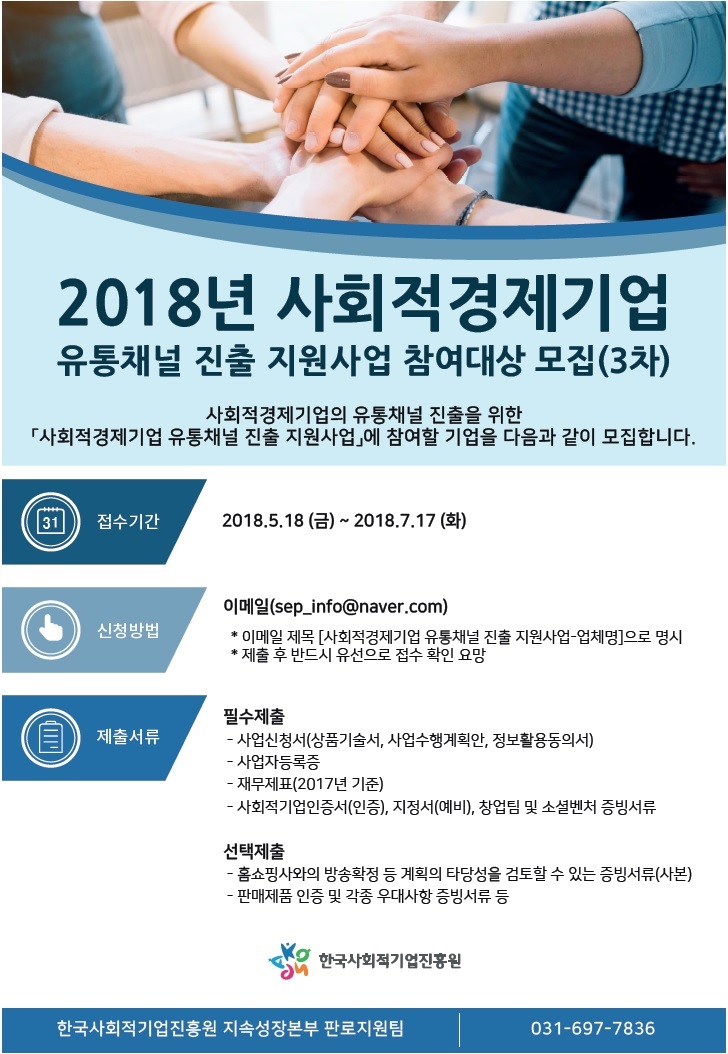 [한국사회적기업진흥원] 2018년도 사회적경제기업 유통채널 진출 지원사업 참여대상 모집(3차)