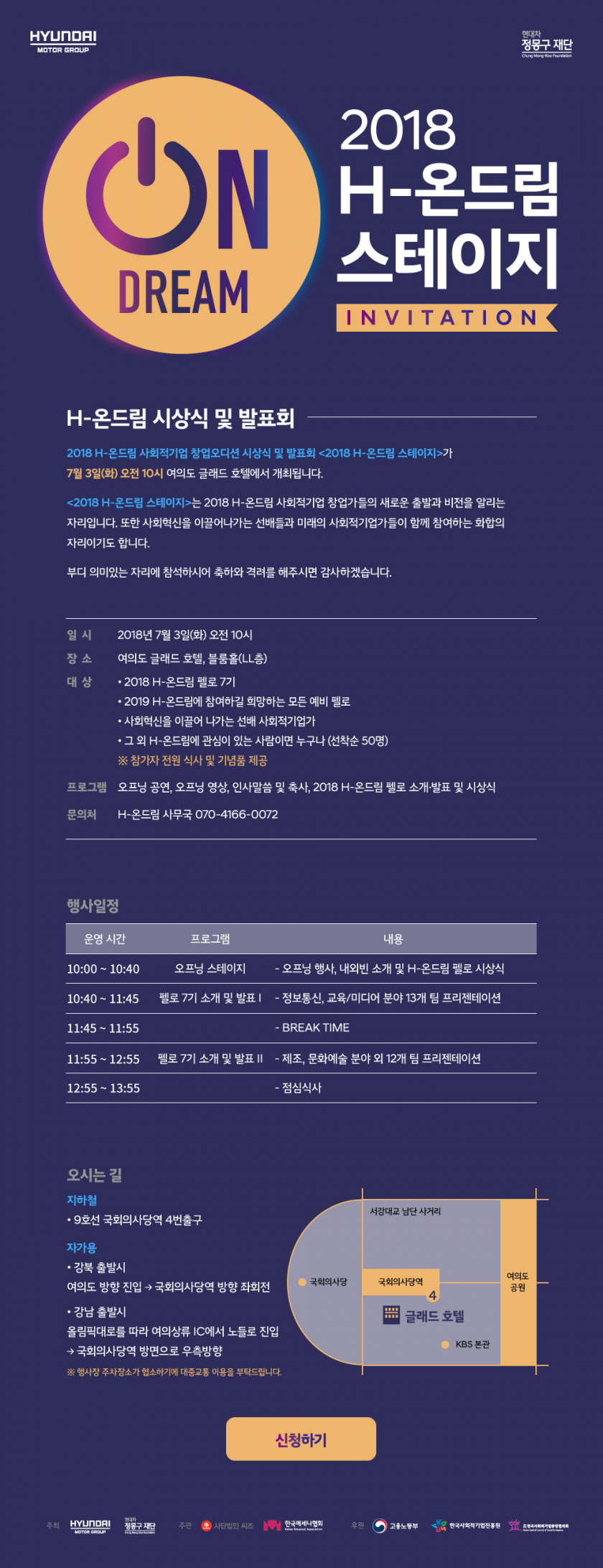 [H-온드림] 2018년 H-온드림 사회적기업 창업오디션 시상식 및 발표회 참가 신청