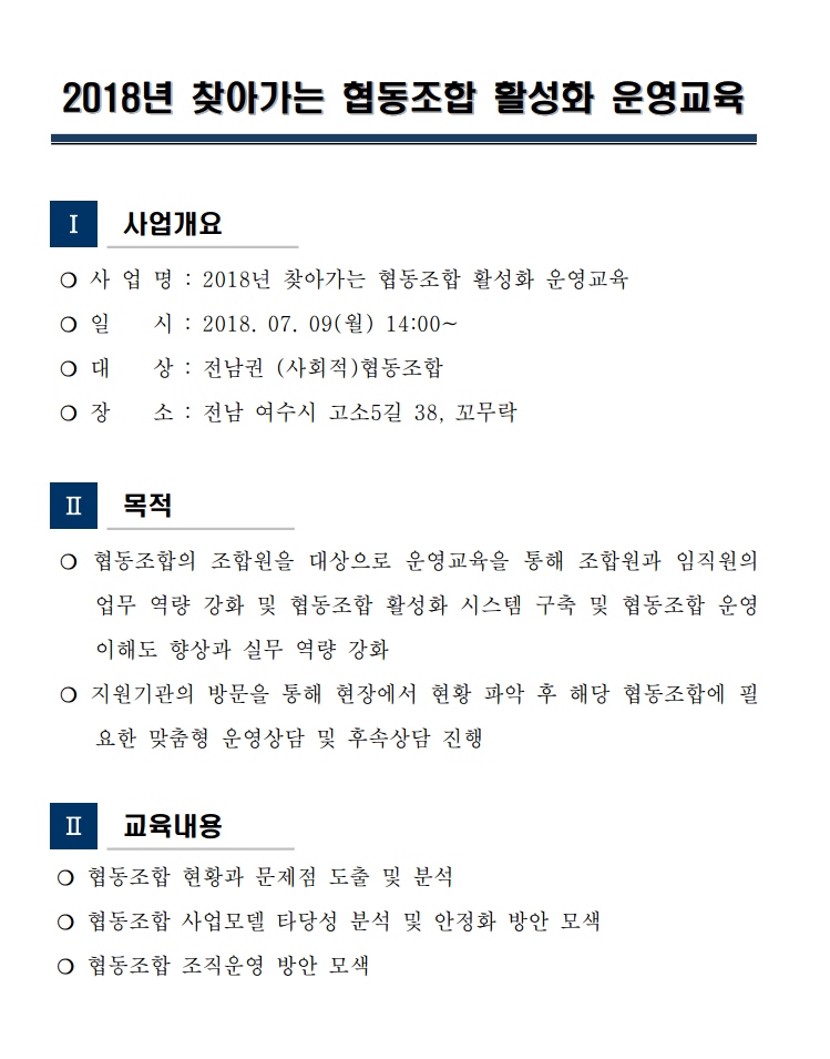 [알림] 2018 찾아가는 협동조합 활성화 운영교육