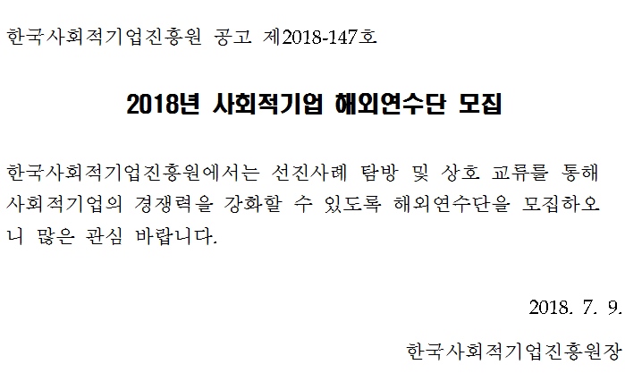 [붙임1] 2018년 사회적기업 해외연수 연수단 모집 공고문.hwp (115.0K)