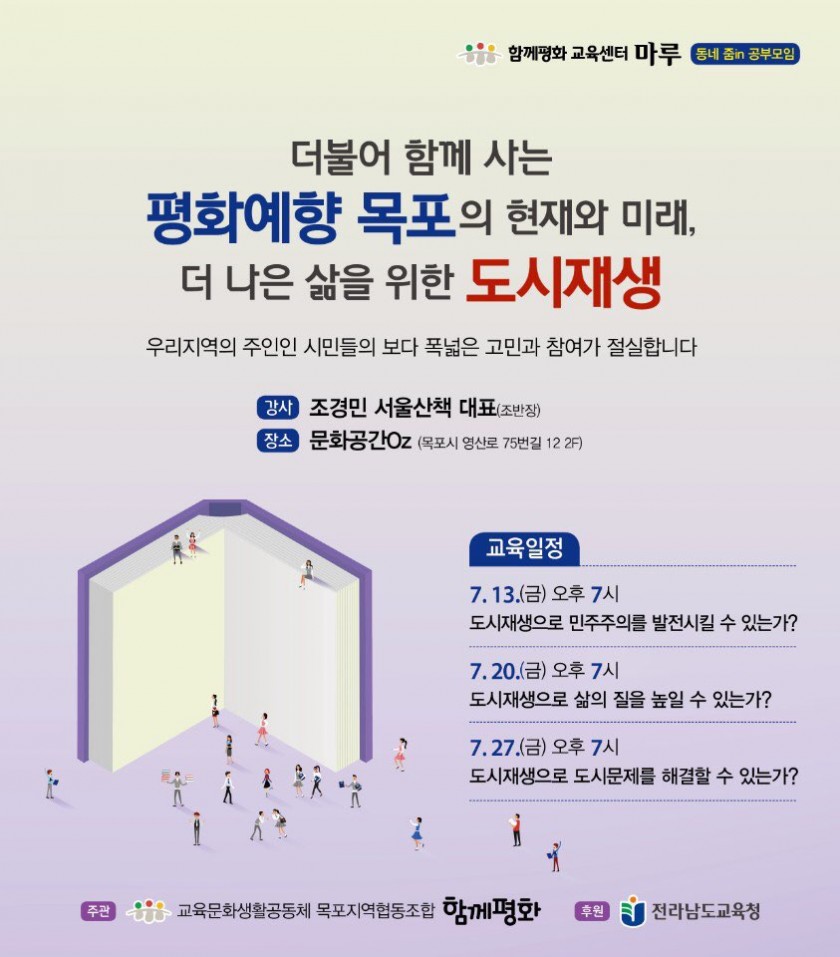 [알림] 더불어 함께 사는 평화예향 목포의 현재와 미래, 더 나은 삶을 위한 도시재생 교육 안내