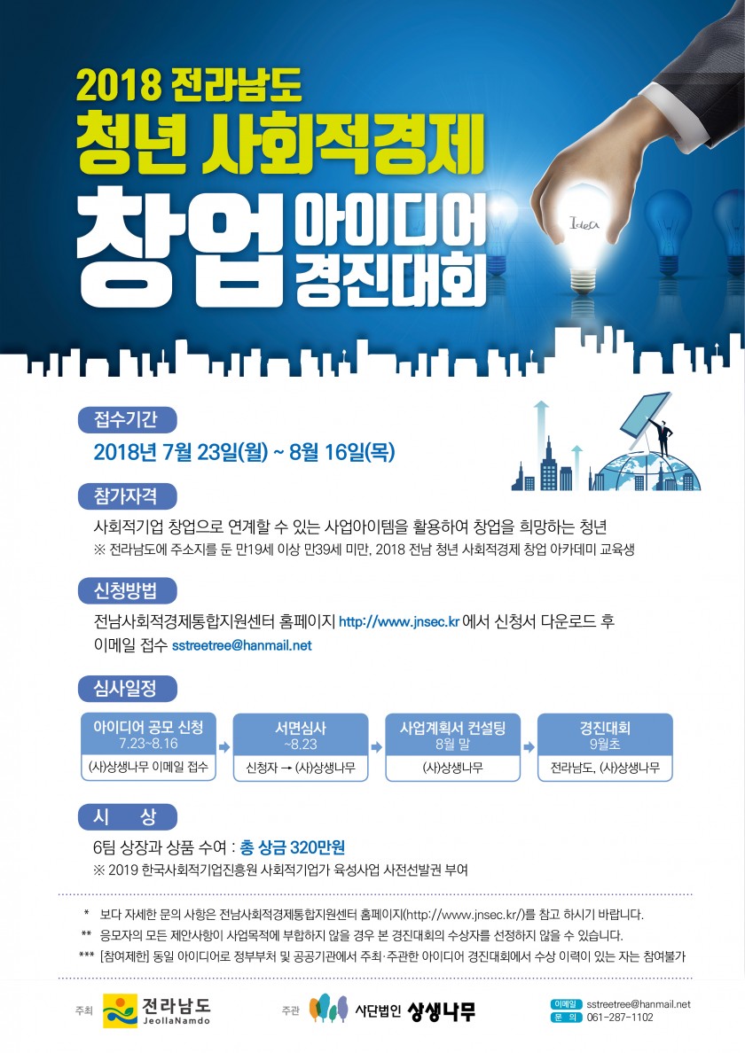 [(사)상생나무]2018 전라남도 청년 사회적경제 창업 아이디어 경진대회 안내(~8/16)