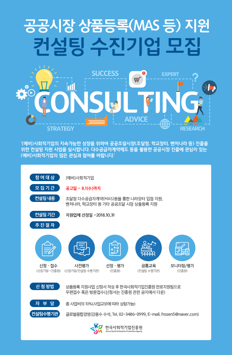 [한국사회적기업진흥원] 공공조달 시장 상품등록(MAS 등) 지원 컨설팅 수진기업 모집(~8/1)