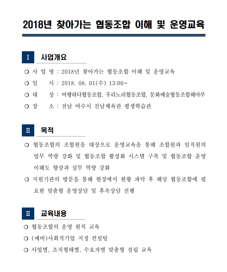 [알림] 2018년 찾아가는 협동조합 이해 및 운영교육