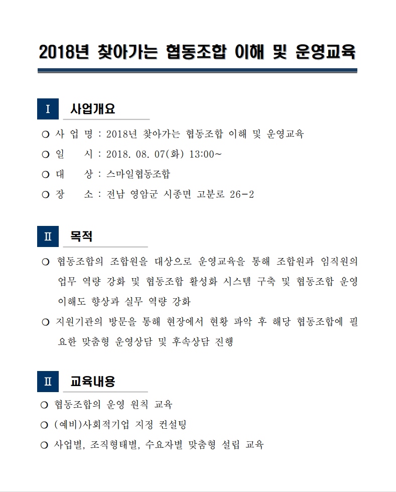[알림] 2018 찾아가는 협동조합 이해 및 운영교육