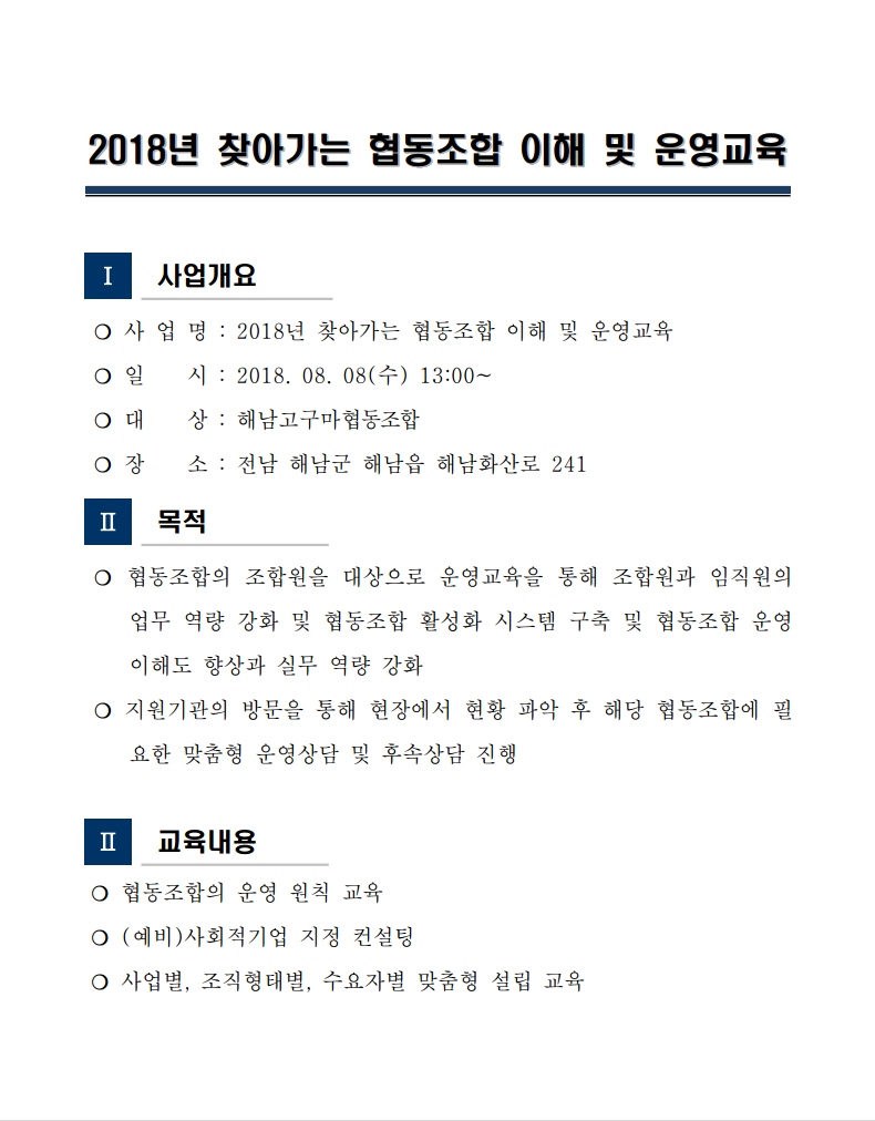 [알림] 2018년 찾아가는 협동조합 이해 및 운영교육