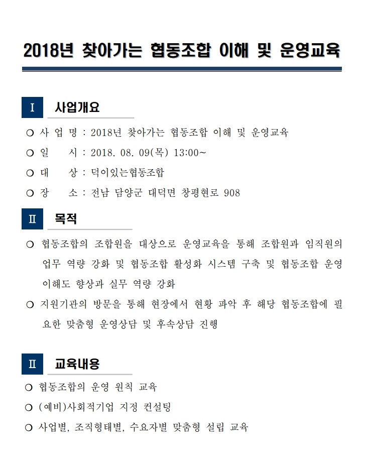 [알림] 2018년 찾아가는 협동조합 이해 및 운영교육