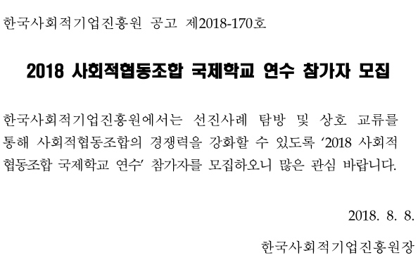 [한국사회적기업진흥원] 2018 사회적협동조합 국제학교 연수 참가자 모집