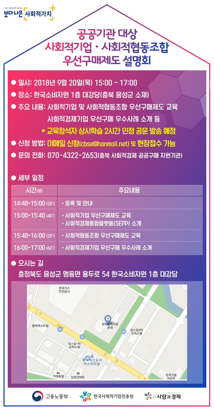 [모집] 공공기관 대상 사회적기업·사회적협동조합 우선구매제도 설명회 개최(9.20)