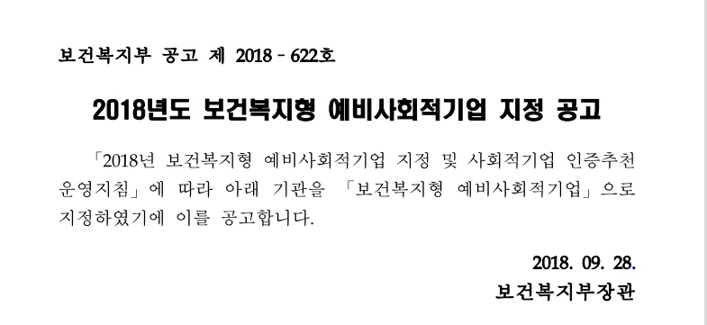 [보건복지부] 2018년 보건복지형 예비사회적기업 지정 공고