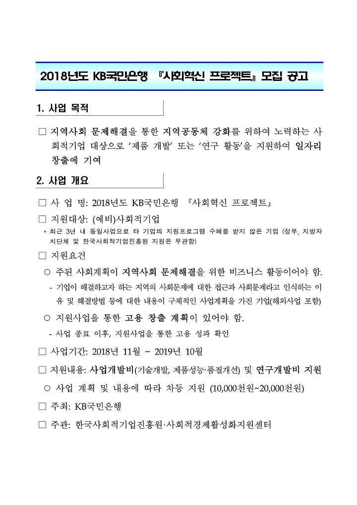 [공모] 진흥원과 KB 국민은행이 함께하는 2018년도 [사회혁신 프로젝트]공모