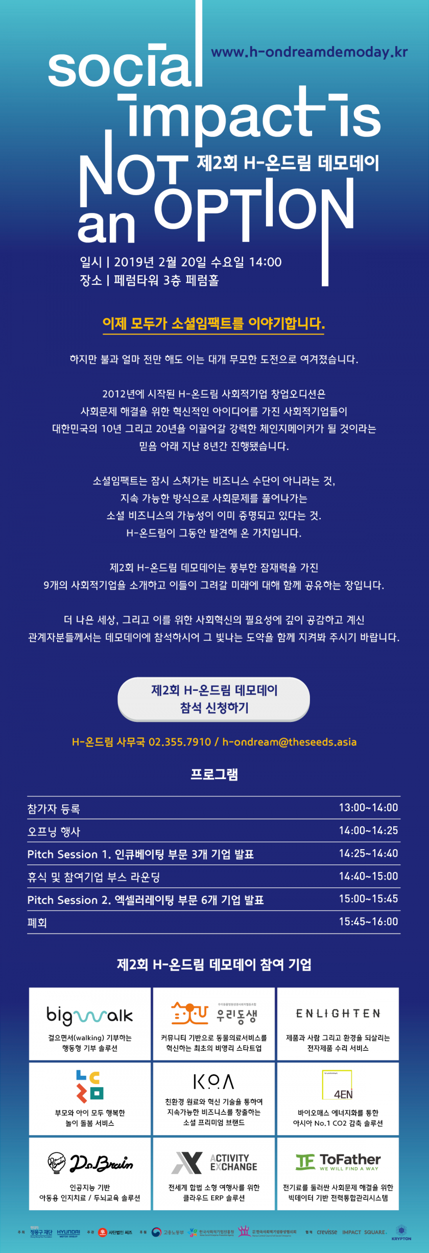 [사단법인 씨즈]제2회 H-온드림 데모데이(2/20)