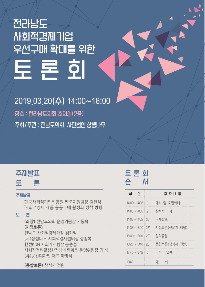전라남도 사회적경제기업 우선구매 확대를 위한 토론회(3/20)