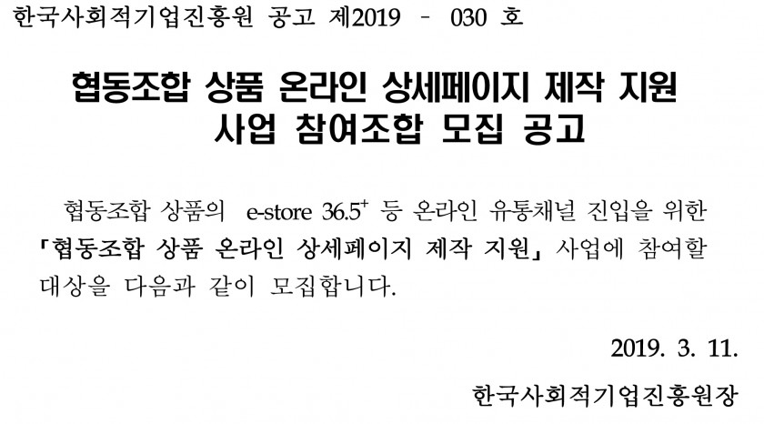 [한국사회적기업진흥원]협동조합 상품 온라인 상세페이지 제작 지원사업 참여조합 모집(~4/10)